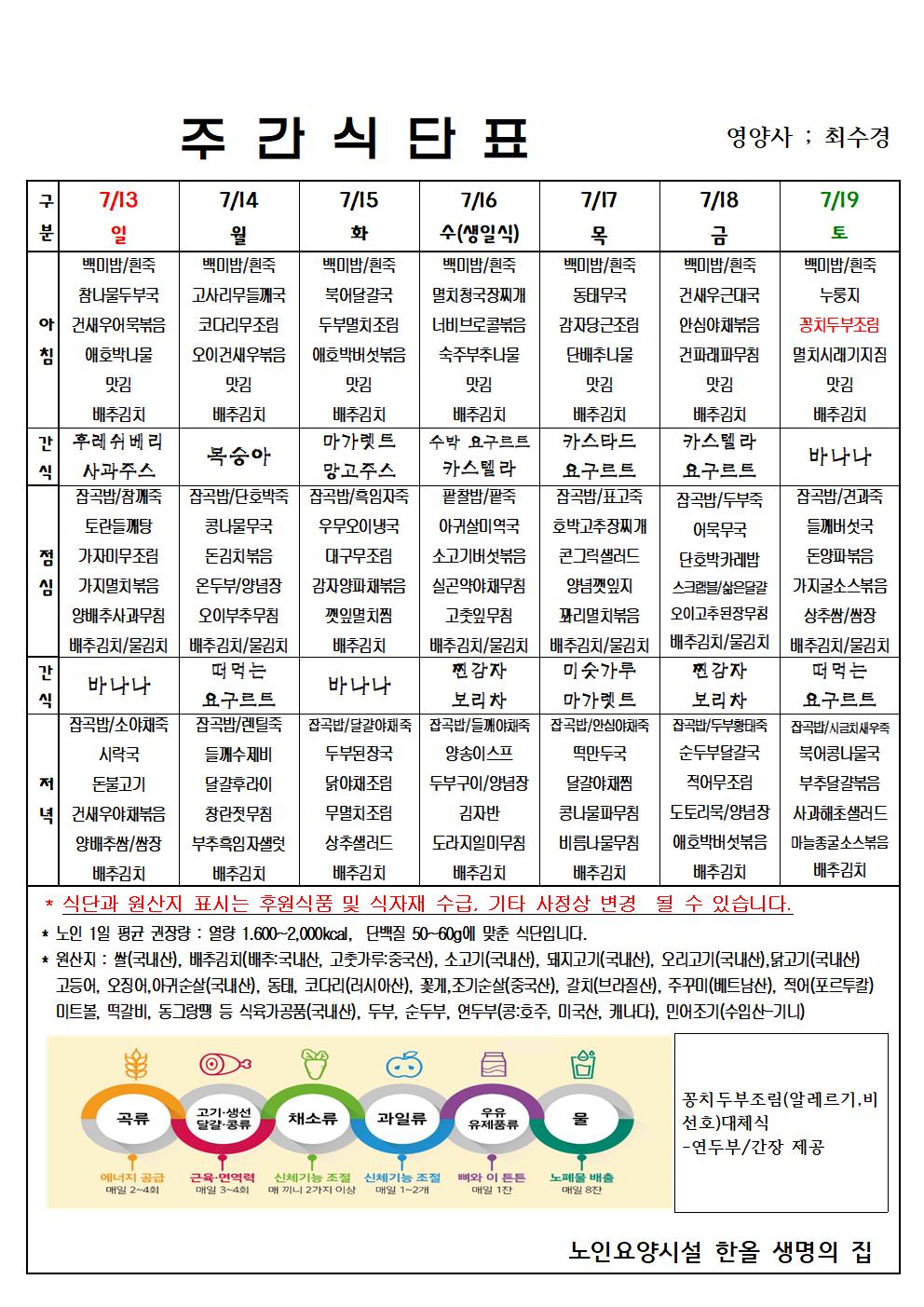 7월 3주 식단표