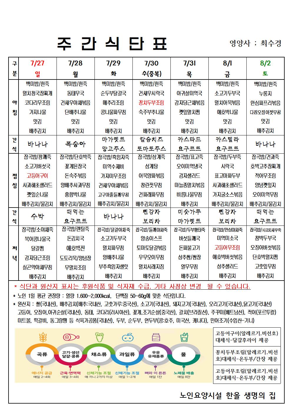 7월 5주 식단표