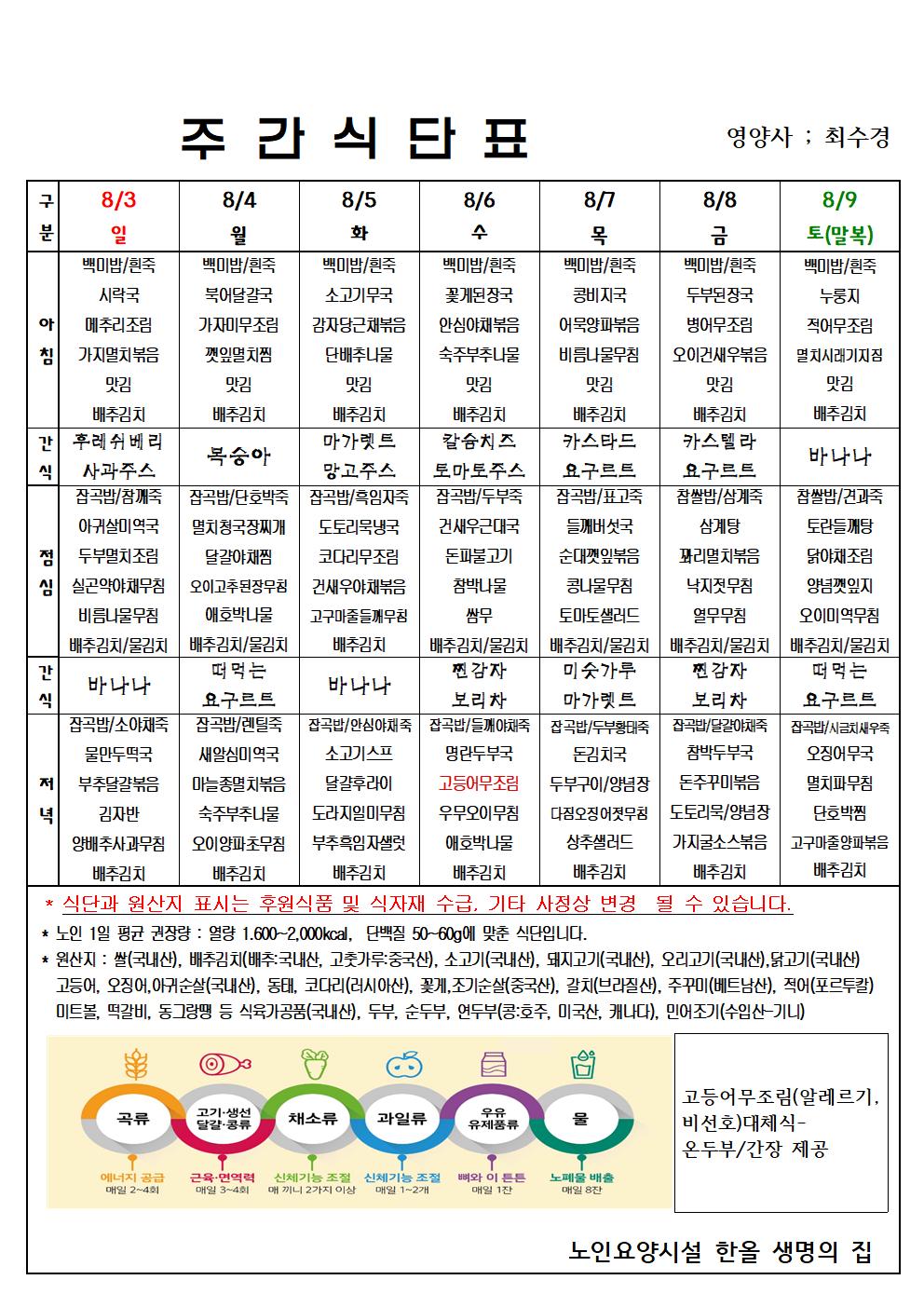 8월 1주 식단표