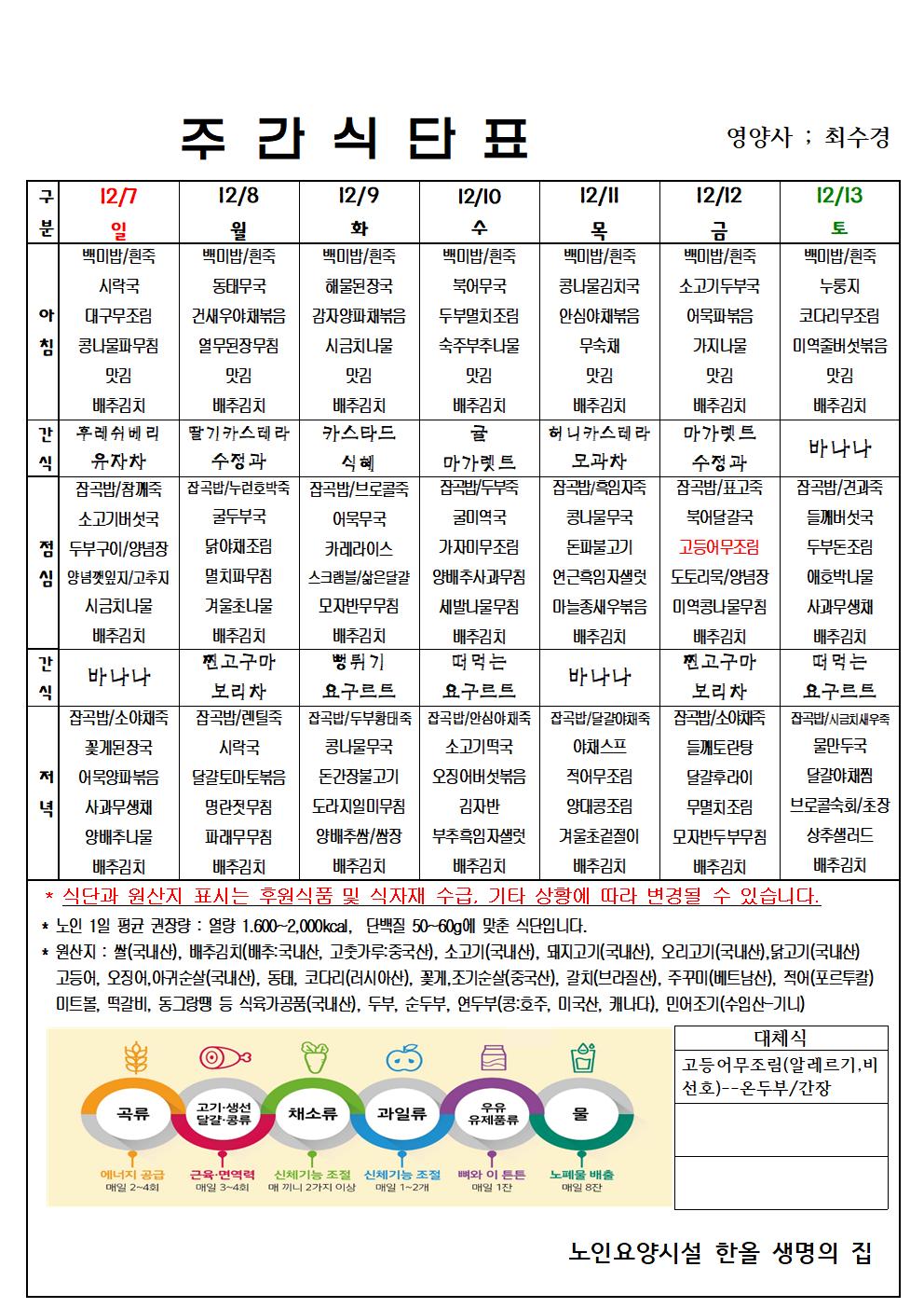 12월 2주 식단표