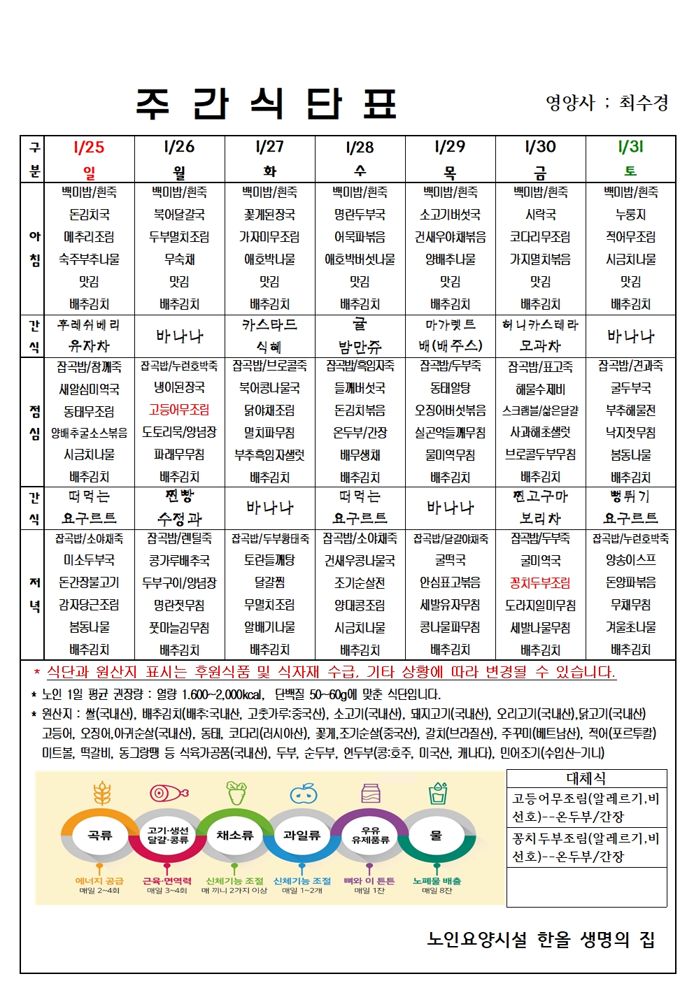 1월 5주 식단표