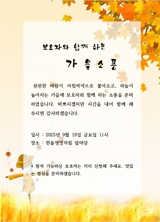 보호자와 함께 하는 가을소풍을 준비했습니다.