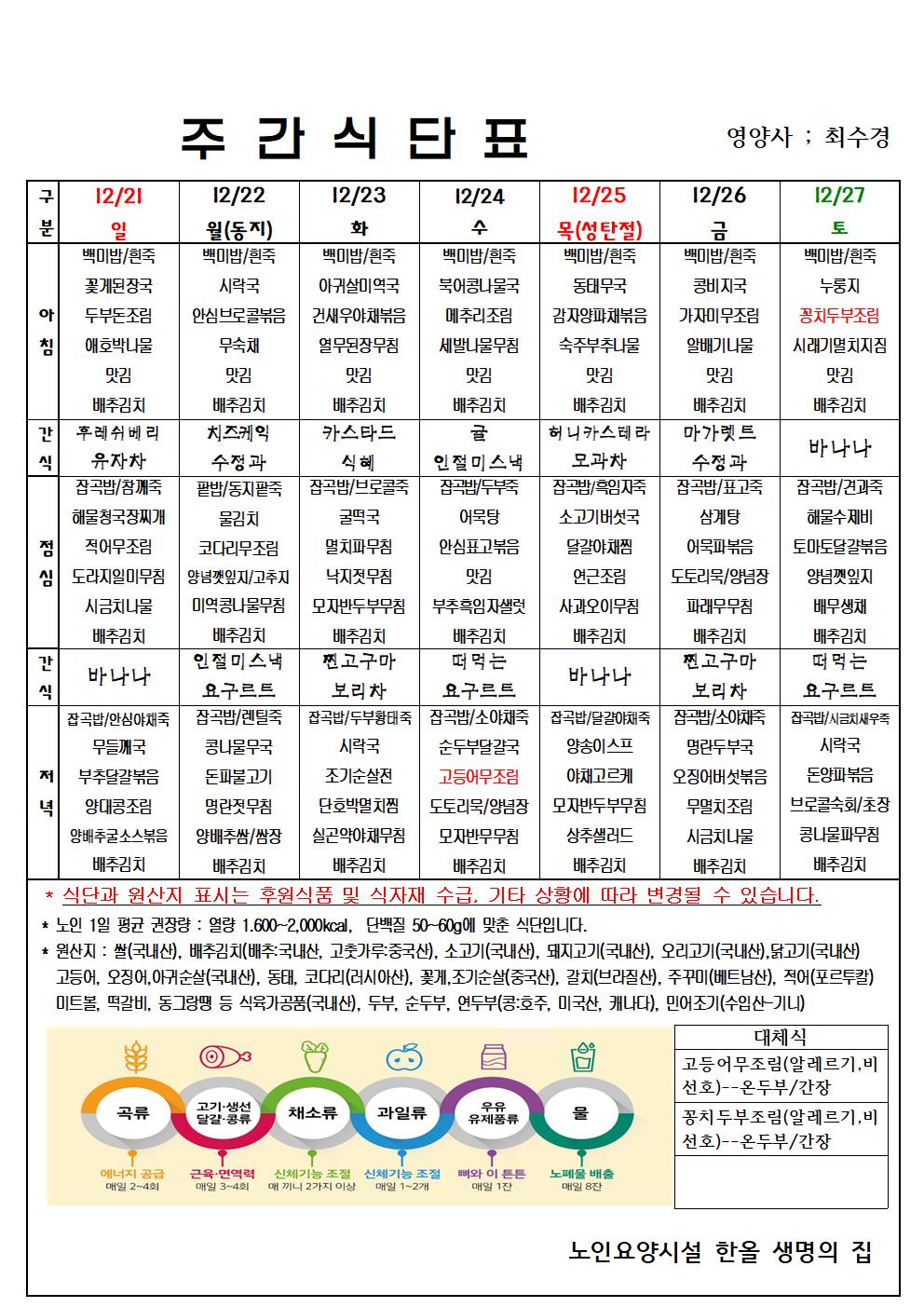 12월 4주 식단표