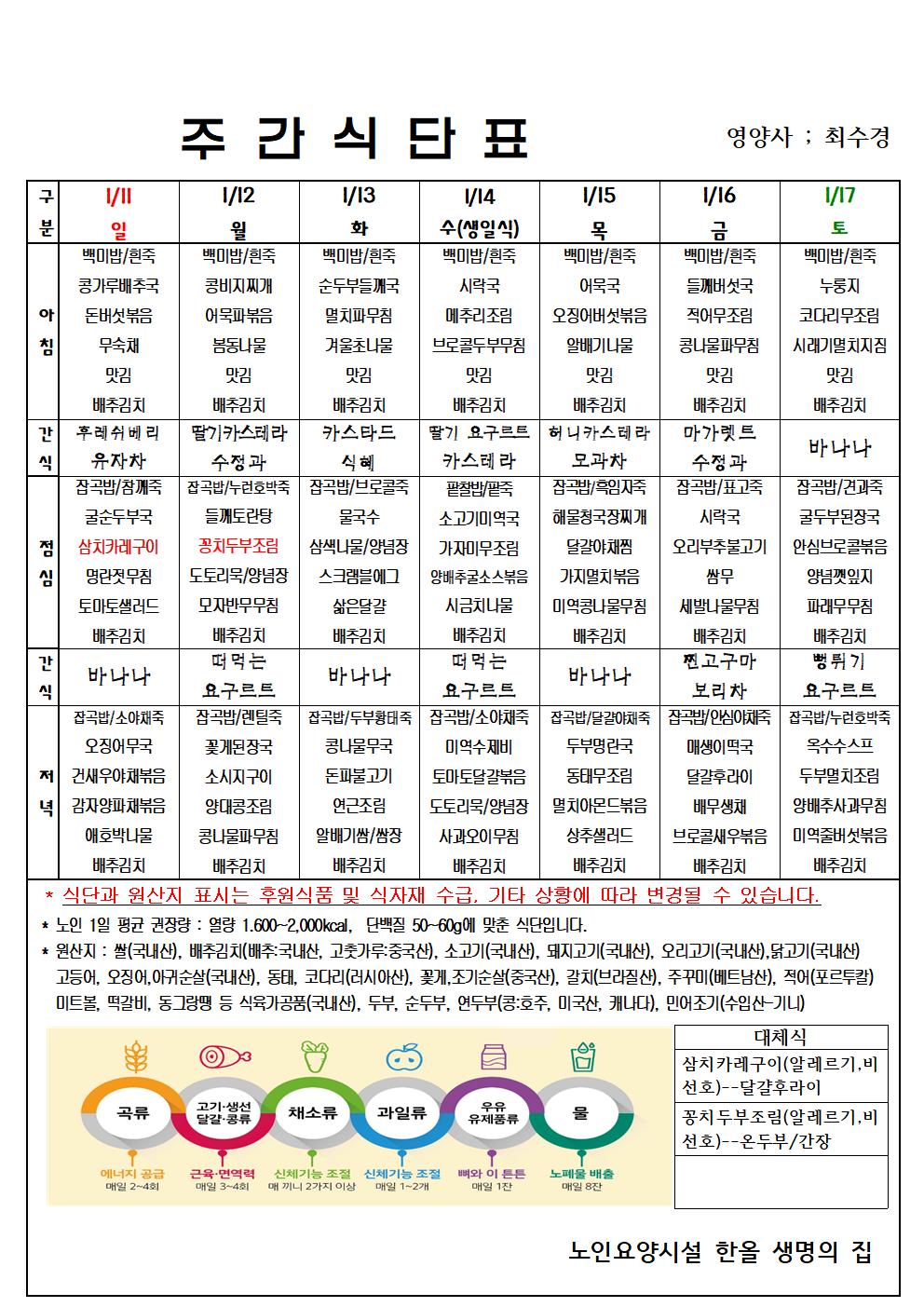 1월 3주 식단표