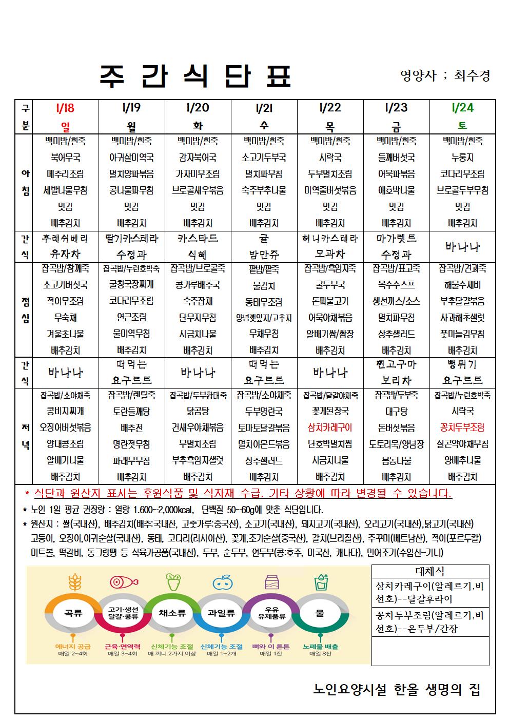 1월 4주 식단표