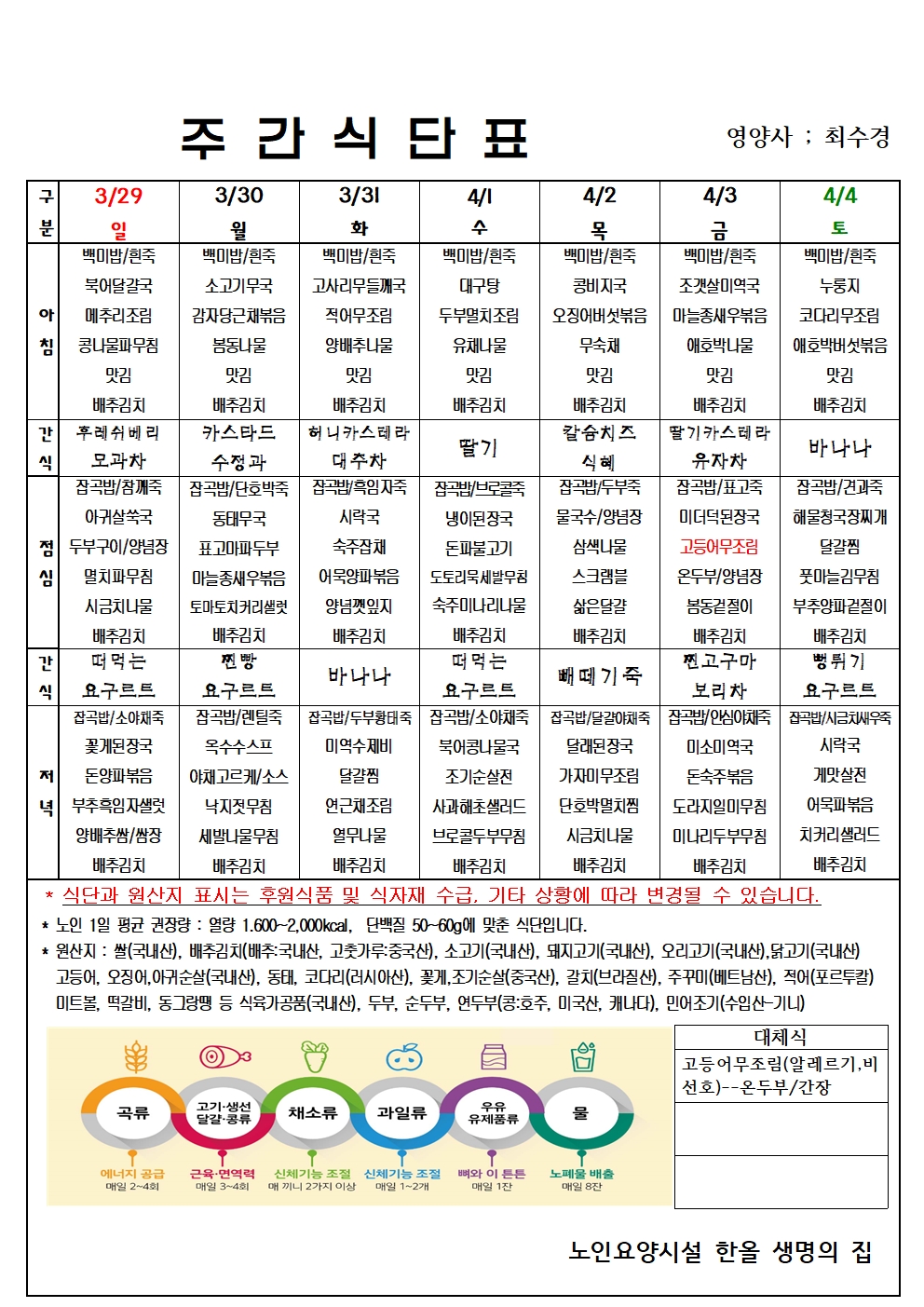 4월 1주 식단표